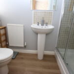 En-Suite Shower Room 2.31m x 1.32m White three piece suite comprising pedestal wash hand basin, step in shower cubicle, low level WC, partially tiled walls, double glazed window to front, extractor fan and radiator.