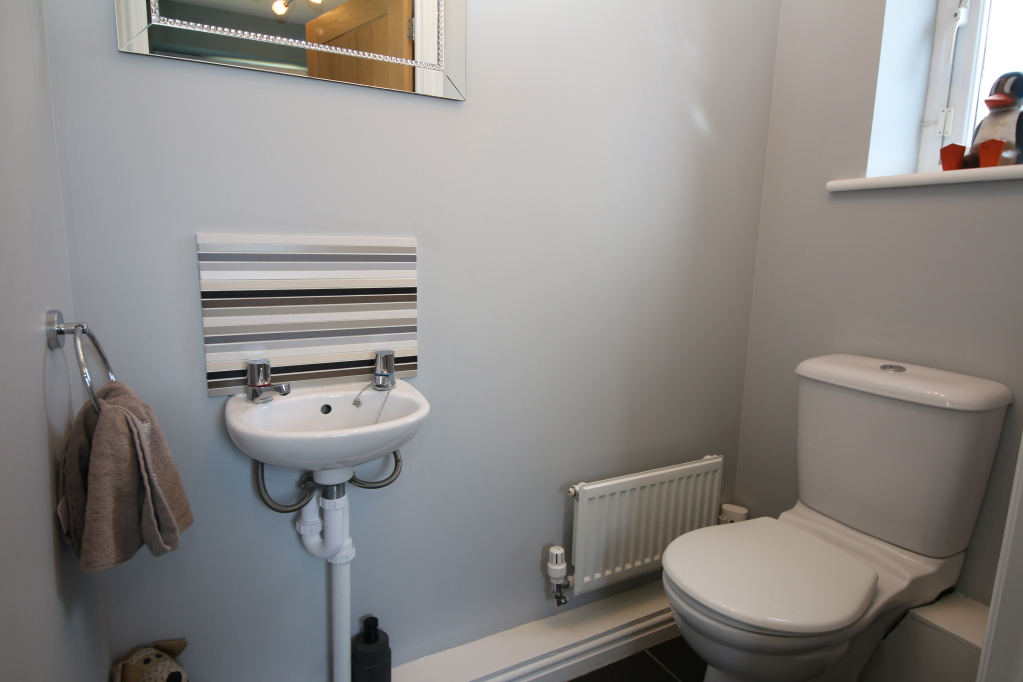 Cloakroom/WC 0.91m x 1.64m Double glazed window to side, low level WC, wash hand basin and radiator.