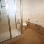 Bathroom 2.96m x 2.91m White four piece comprising panelled bath, wash hand basin in vanity unit, step in shower cubicle, low level WC, tiled walls, heated towel rail and extractor fan.