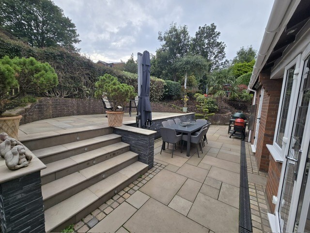 Rear Garden Landscaped patio areas, mature planting, security system, outdoor heating, outdoor lighting, fenced boundaries and gated access.