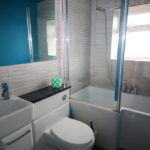 Wet Room 1.54m x 1.41m White suite comprising wash hand basin, low level WC, tiled walls, tiled floor, wall mounted shower and Velux window.