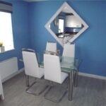 Dining Kitchen 4.41m x 2.66m Fitted wall and base units with coordinating work surfaces, sink unit, integrated electric oven, integrated gas hob, extractor hood, integrated dishwasher, radiator and two double glazed windows to rear.