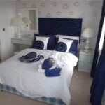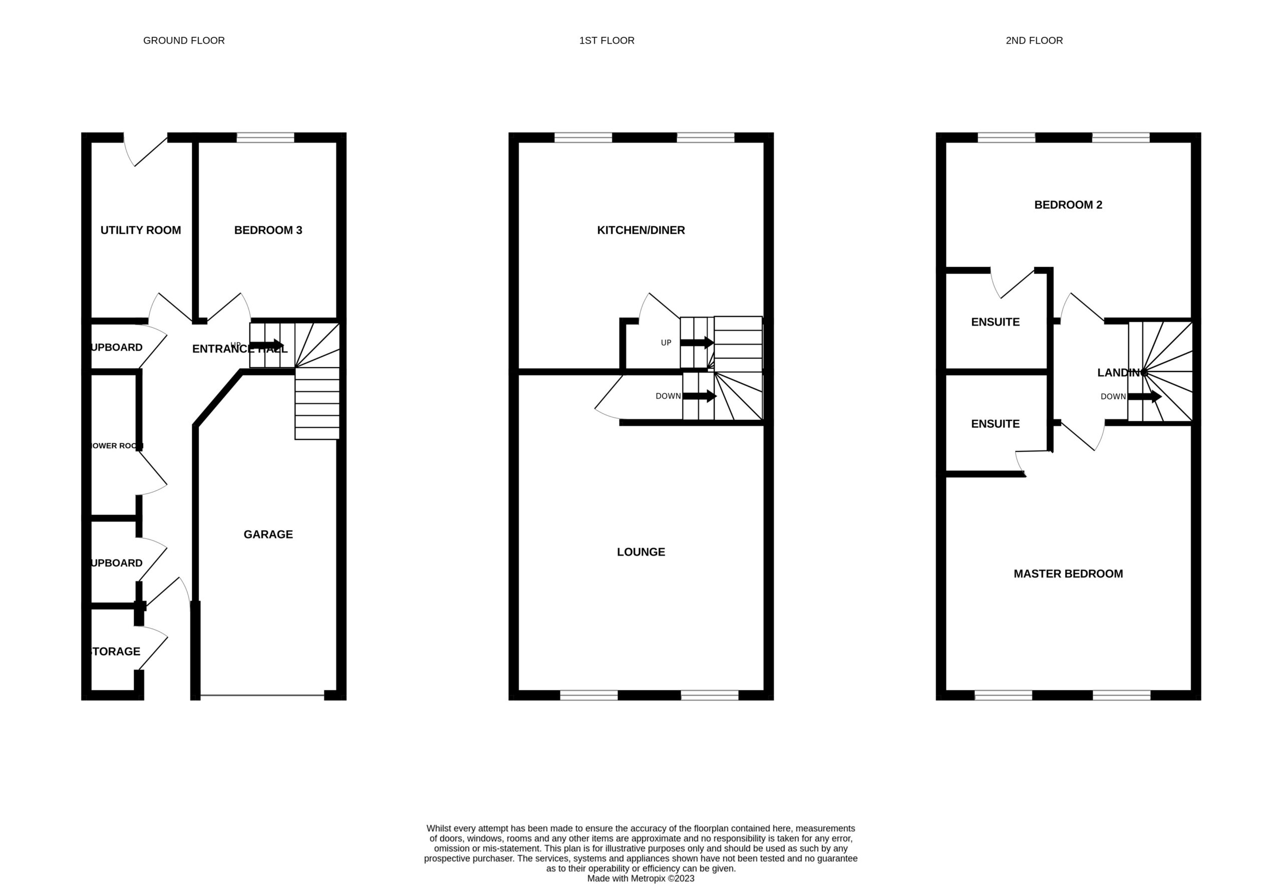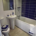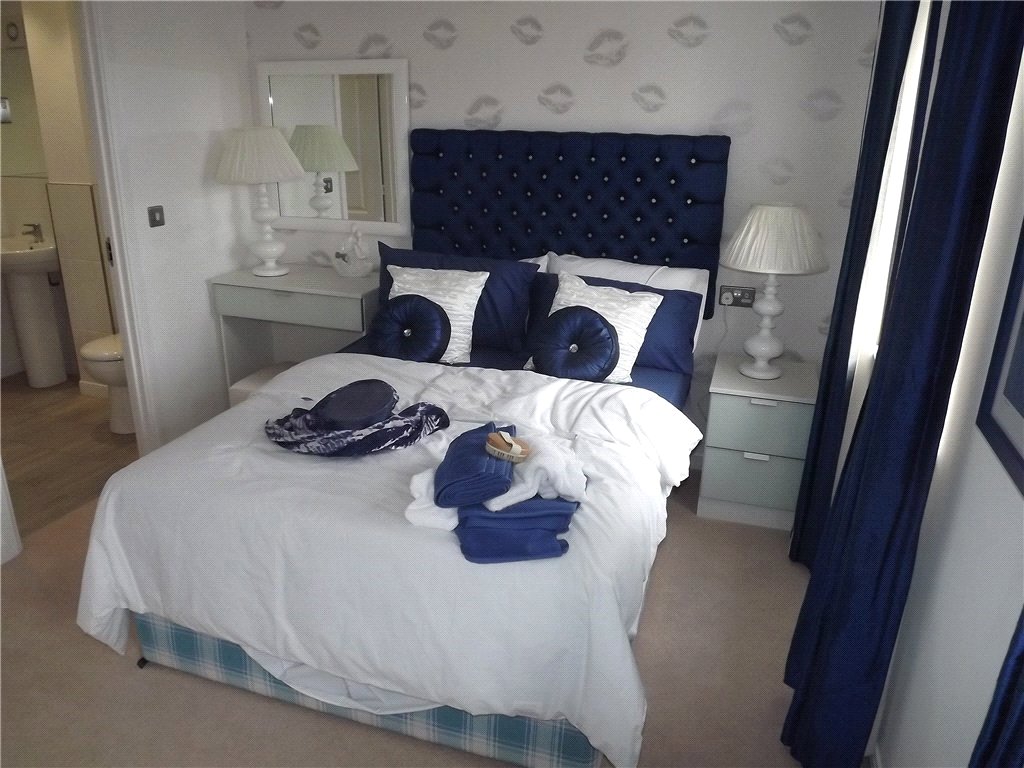En-Suite Shower Room 1.98m x 1.68m White three piece suite comprising step in shower cubicle, pedestal wash hand basin, low level WC, extractor fan and radiator.