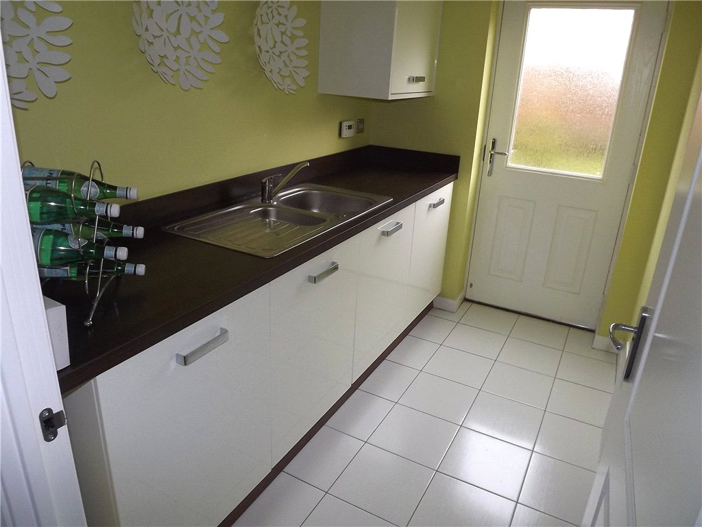 Utility Room 2.90m x 2.67m Fitted wall and base units with coordinating work surfaces, sink unit, space for washing machine, radiator and double glazed door to rear.