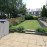 Rear Yard Side door into garage, walled boundaries and gated access.