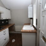 Kitchen 3.00m x 2.07m Fitted wall and base units with coordinating work surfaces, integrated electric oven, integrated electric hob, extractor hood, space for washing machine, partially tiled walls, radiator, double glazed window to side and double glazed door to side.