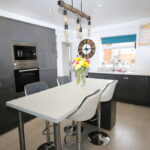 Dining Kitchen 4.70m x 3.41m Fitted wall and base units with coordinating work surfaces, single drainer sink unit, breakfast bar, integrated electric oven, integrated electric hob, extractor hood, integrated dishwasher, integrated microwave, integrated fridge freezer, radiator, double glazed window to front and double glazed door to side.