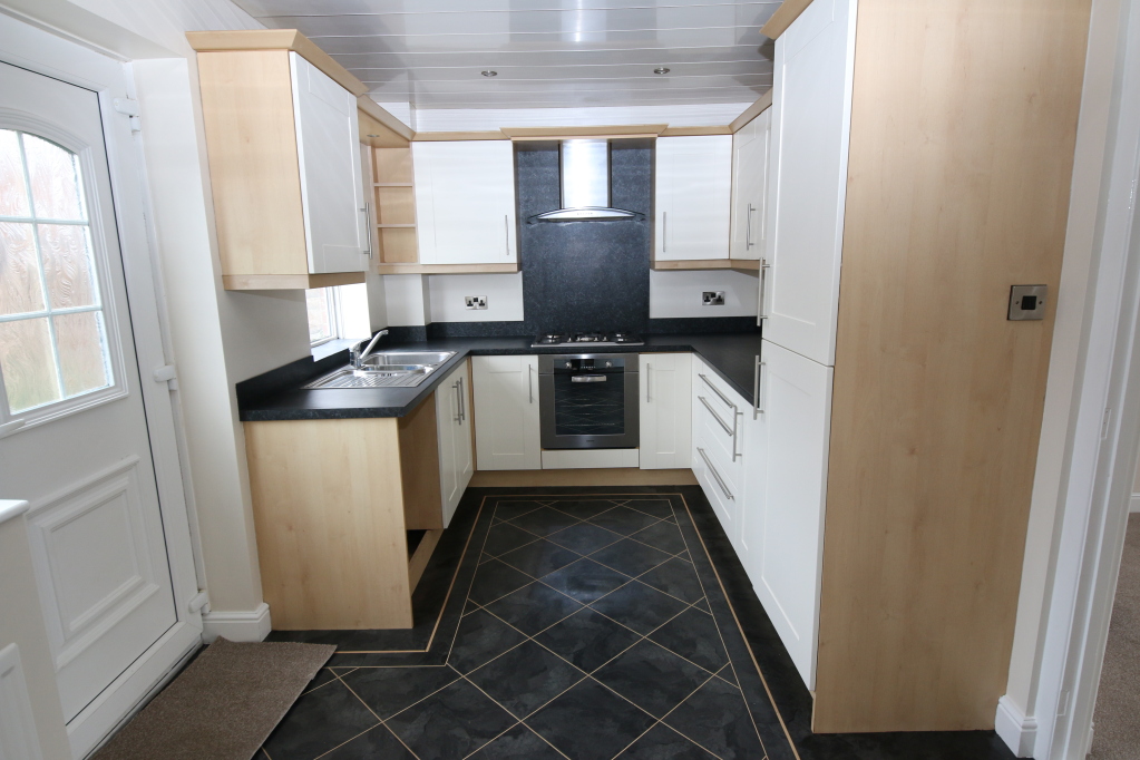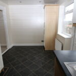 Dining Kitchen 2.55m x 4.74m Fitted wall and base units with coordinating work surfaces, sink unit, integrated electric oven, integrated gas hob, extractor hood, space for washing machine, integrated fridge freezer, radiator, two double glazed windows to rear and double glazed door to rear.