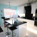 Dining Kitchen 4.38m x 3.48m Fitted wall and base units with coordinating work surfaces, sink unit, integrated electric oven, integrated electric hob, extractor hood, integrated microwave, space for washing machine, island/breakfast area, tiled floor, radiator, double glazed window to rear and double glazed door to rear.