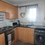 Kitchen 2.39m x 2.26m Fitted wall and base units with coordinating work surfaces, single drainer sink unit, integrated electric oven, electric hob, extractor hood, space for washing machine, partially tiled walls and double glazed window to side.